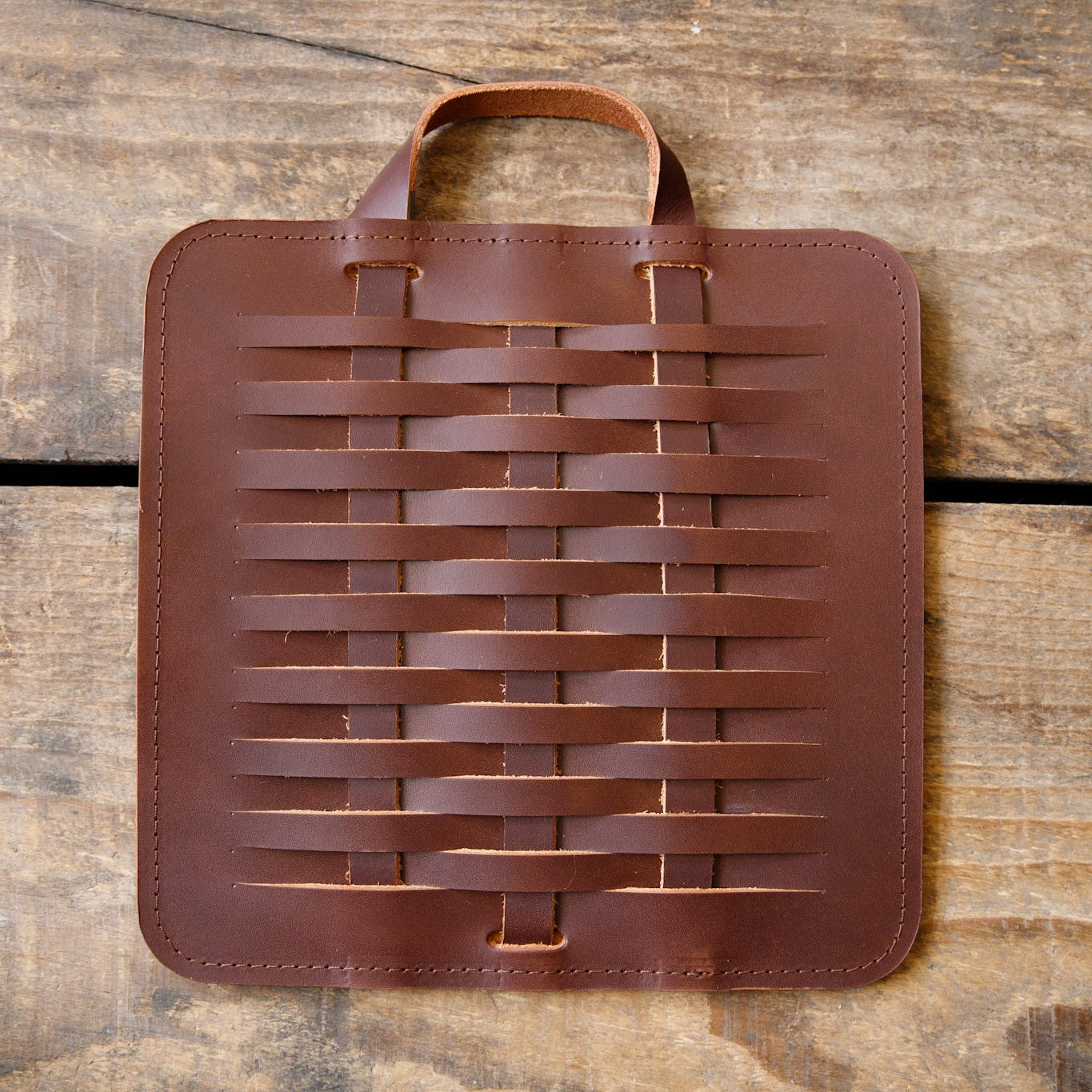 Our woven leather trivet is the ideal kitchen accessory to catch a hot pot or warm dish on your counter or table. The vegetable tanned leather will transform over time, gaining charm, color and character with sun and use.